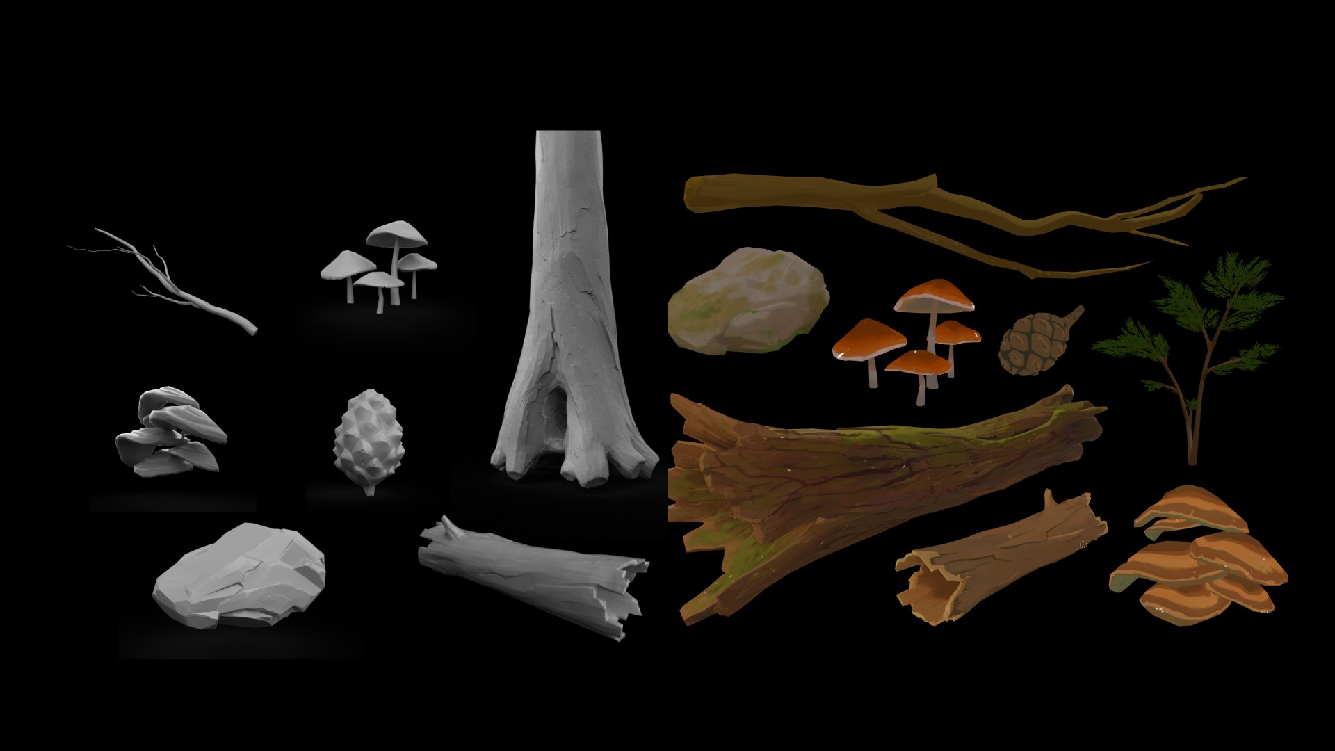 The project was developed for both mobile web AR and web VR, requiring significant optimization. Figuring out the best techniques using multiple new tools was a real challenge. The entire canopy was textured, and much of the ground cover used instanced meshes with code input for transform placement, all of which had to be figured out on the fly.